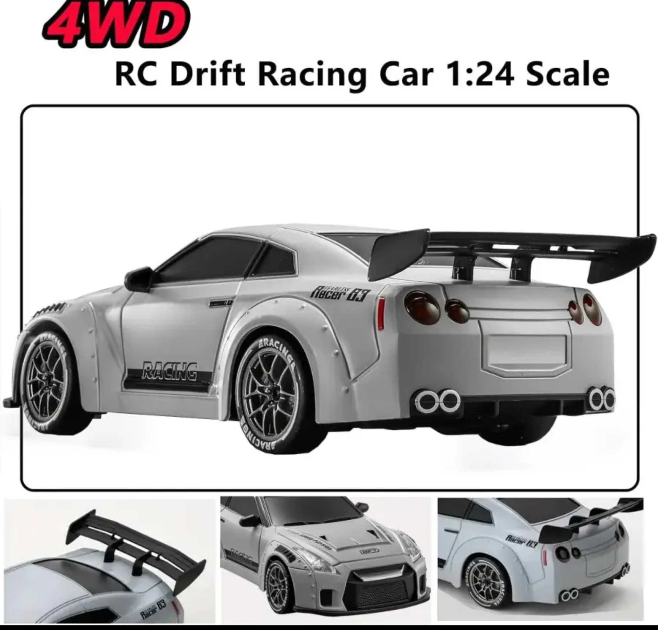 - 1 x 1:24 Sports 4WD RC Car Gray